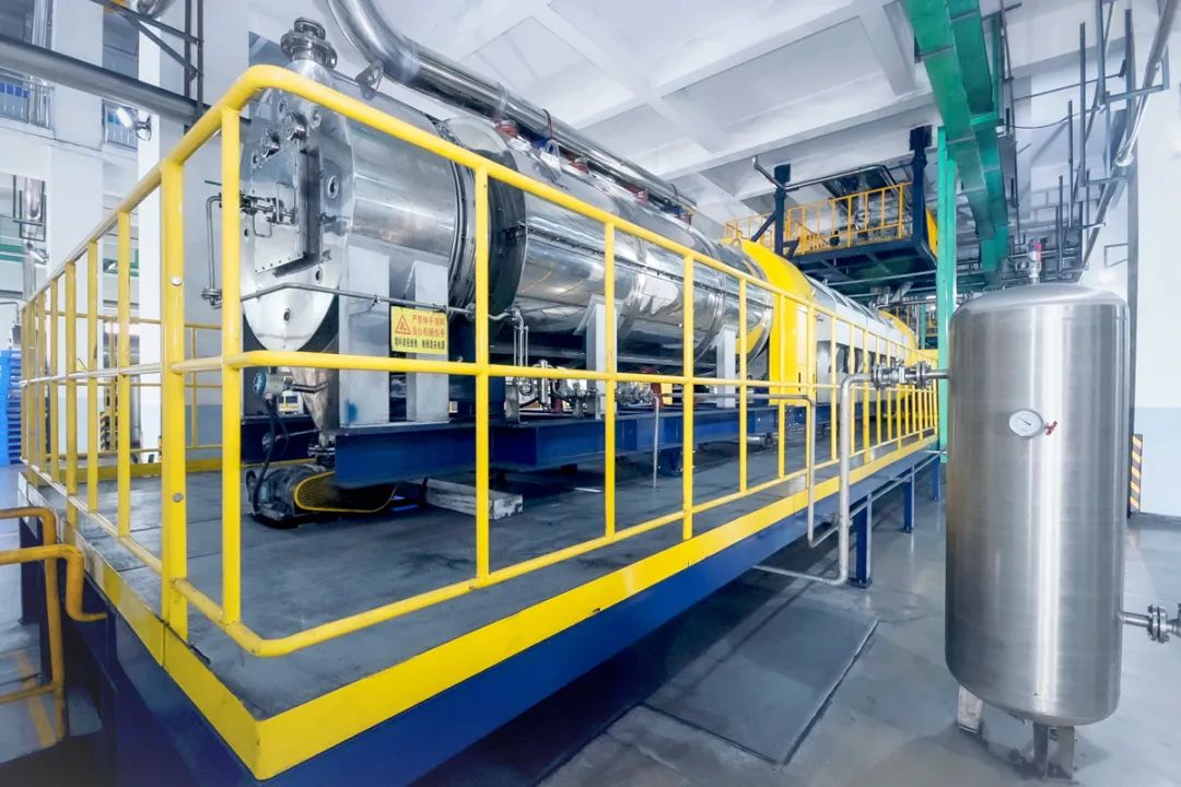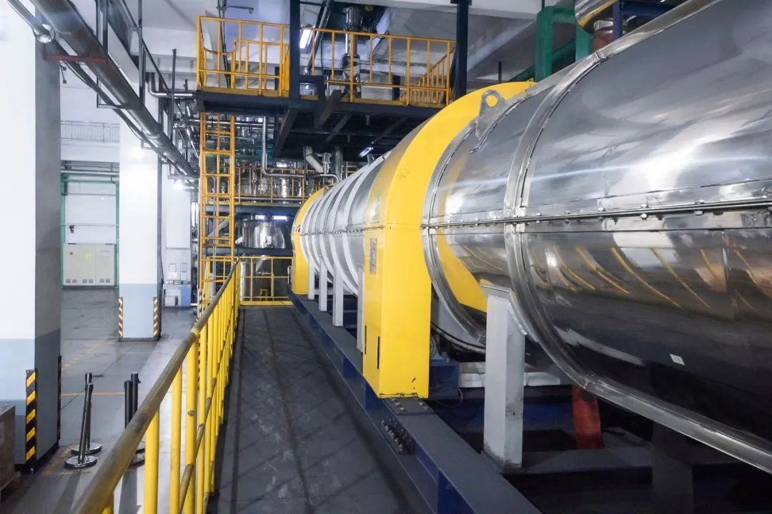 外觀普通而整潔的白色廠房里,三、四層樓高的產線設備,通過粗細不同、繁密交織的管道,連接一道道復雜的工藝。滾動的窯爐中,中控顯示跳動的數字背后、指針移動的反應釜里,是寧夏杉杉能源源源不斷的生產力。
