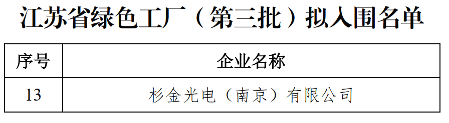 綠色工廠是制造業(yè)的生產(chǎn)單元,是綠色制造的實施主體,屬于綠色制造體系的核心支撐單元,側(cè)重于生產(chǎn)過程的綠色化。杉金光電入圍省級綠色工廠,標志著企業(yè)在節(jié)能環(huán)保、綠色發(fā)展等方面處于行業(yè)領(lǐng)先水平。