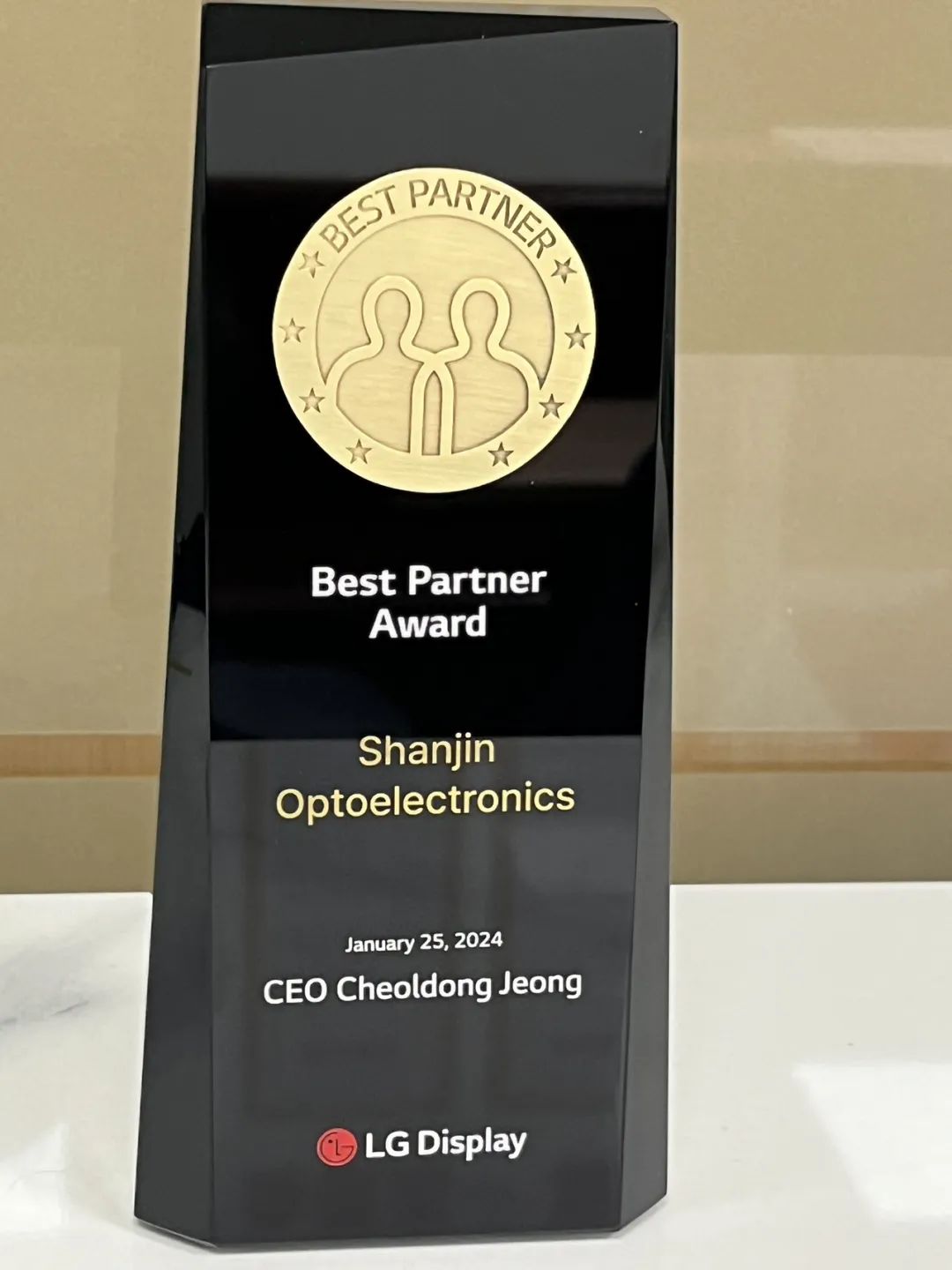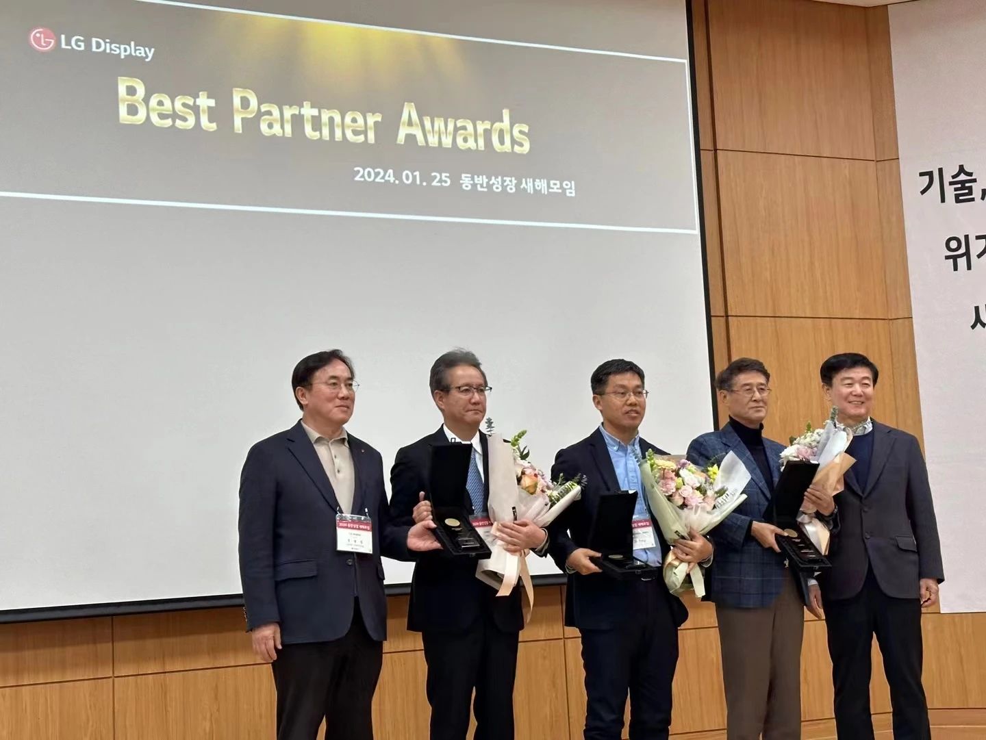 近日,LG Display在韓國(guó)舉行同伴成長(zhǎng)交流會(huì),杉金光電出席大會(huì)并榮獲由鄭哲東社長(zhǎng)頒發(fā)的獎(jiǎng)項(xiàng)——Best Partner Award。